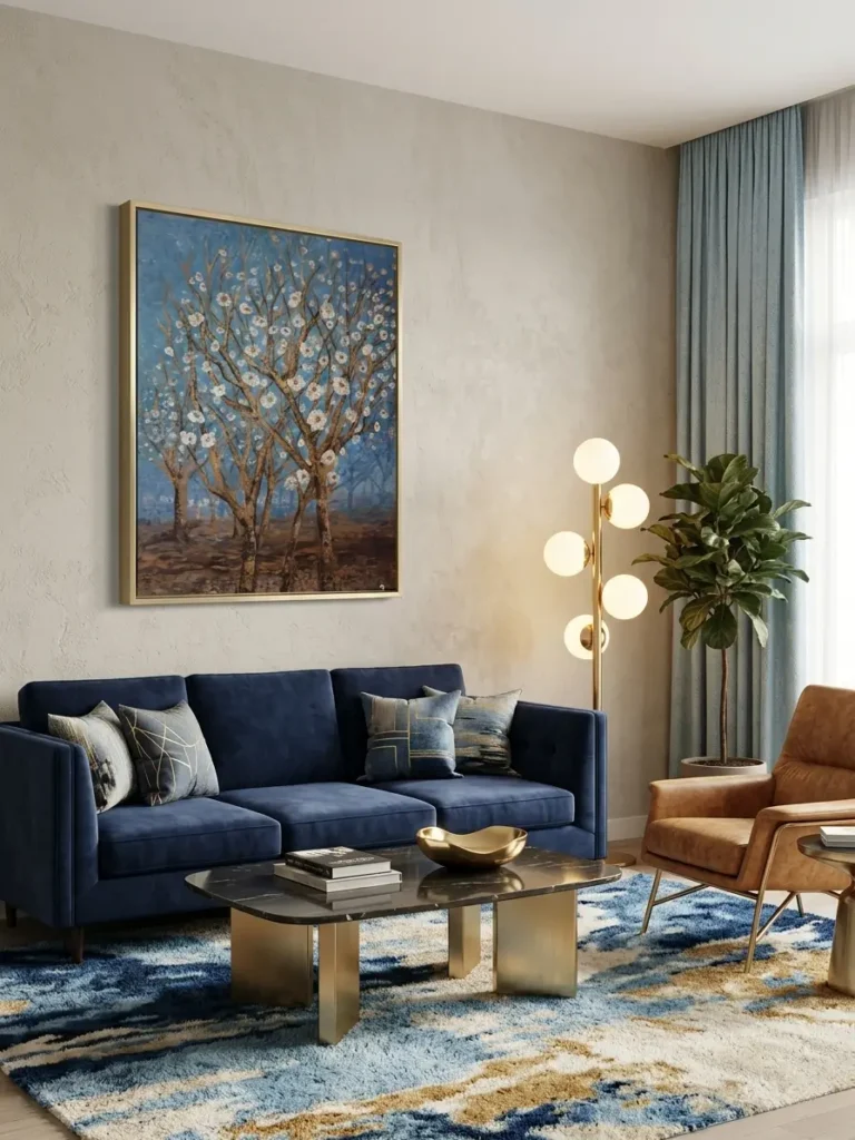 The visualization is for illustrative purposes only. The artwork's actual size may vary relative to the furniture shown, and the frame is not included unless specified otherwise.