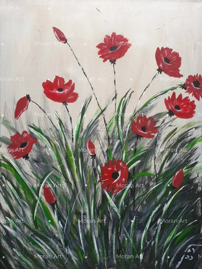 This vibrant piece captures the untamed beauty of a wild floral field, brought to life through my mother’s expressive use of color and texture. With bold, rhythmic strokes of crimson and deep greens, she sought to portray the raw energy and spontaneous grace of nature in its most liberated form.